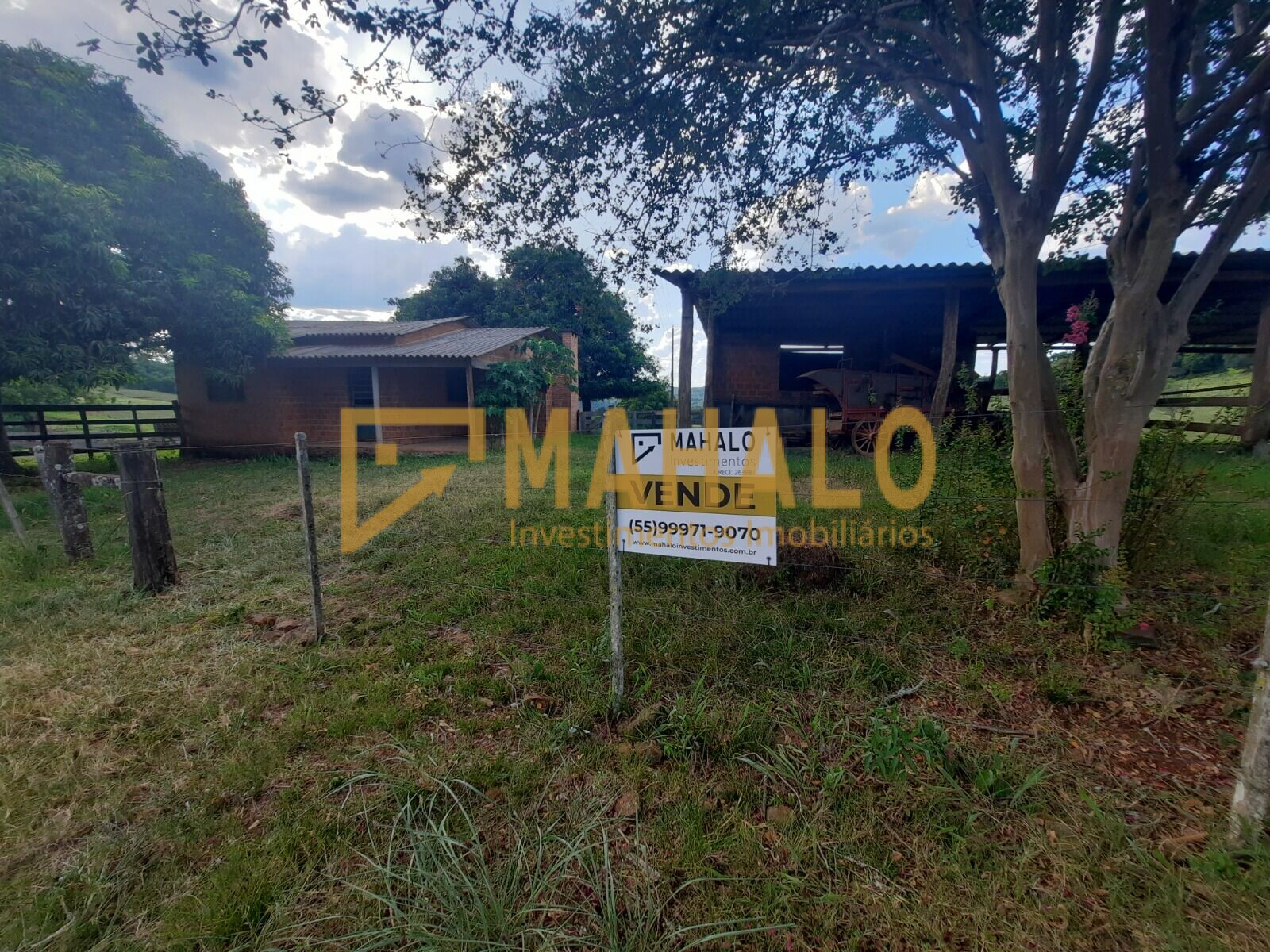 Possui uma casa em alvenaria e um galpão.